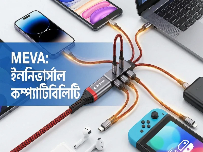 MEVA চার্জিং ক্যাবল অ্যান্ড্রয়েড ফোন, আইফোন, ট্যাব, পাওয়ার ব্যাংকসহ প্রায় সব ধরনের ইউএসবি সাপোর্টেড ডিভাইসের সাথে ব্যবহার করা যায়। ফলে আলাদা আলাদা ক্যাবলের ঝামেলা ছাড়াই এক ক্যাবলেই সব কাজ করা সম্ভব।