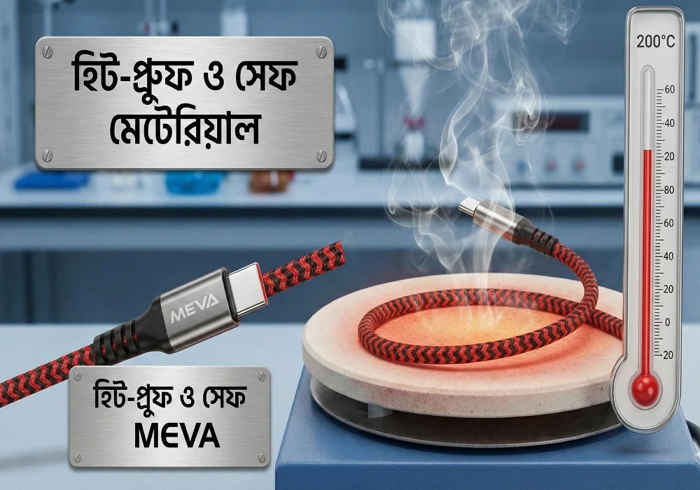 এই ক্যাবলে ব্যবহৃত হিট-প্রুফ উপাদান অতিরিক্ত গরম হওয়া প্রতিরোধ করে। দীর্ঘ সময় চার্জ দিলেও ক্যাবল বা অ্যাডাপ্টার অতিরিক্ত তাপ সৃষ্টি করে না। ফলে আগুন লাগা বা দুর্ঘটনার ঝুঁকি অনেক কমে যায় এবং ব্যবহার আরও নিরাপদ হয়।